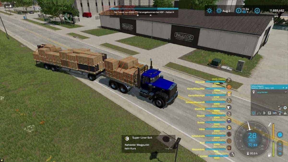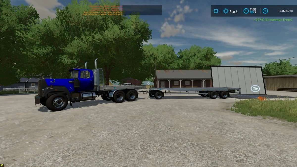 Euro pallets, liquid tanks, BigBag pallets, cotton round bales and oversized Euro pallets can be loaded by the pallet autoloader specialization.