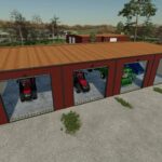 Medium sized heavy equipment workshop with a modern style. Pull thru style with a total of 8 automatic garage doors. 2 personal doors.