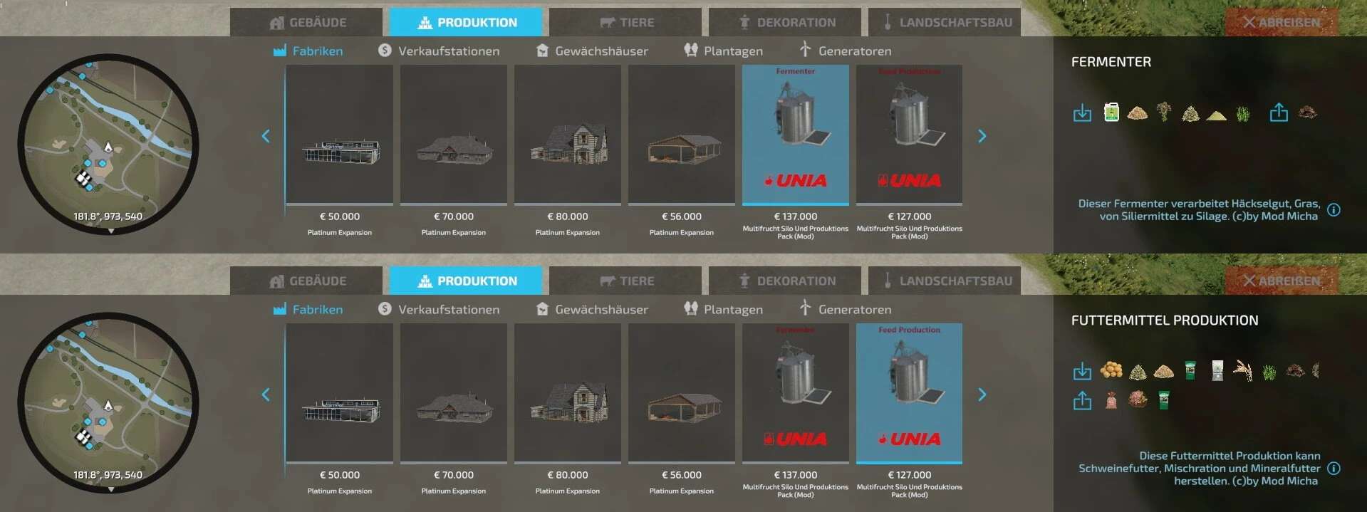 The display of the pictures of the fermenter & the feed production is available in the Giants ModHub.