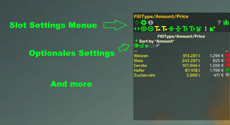 new Implements + Total Selling Price (click BestPrice) for FillTypes/Amount/Price