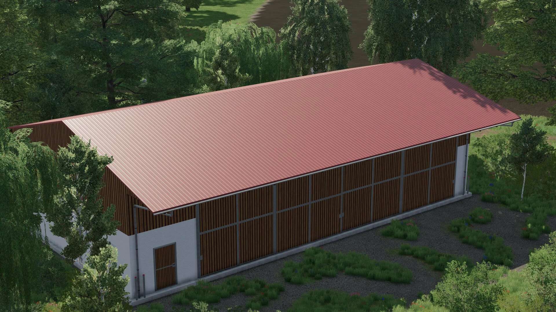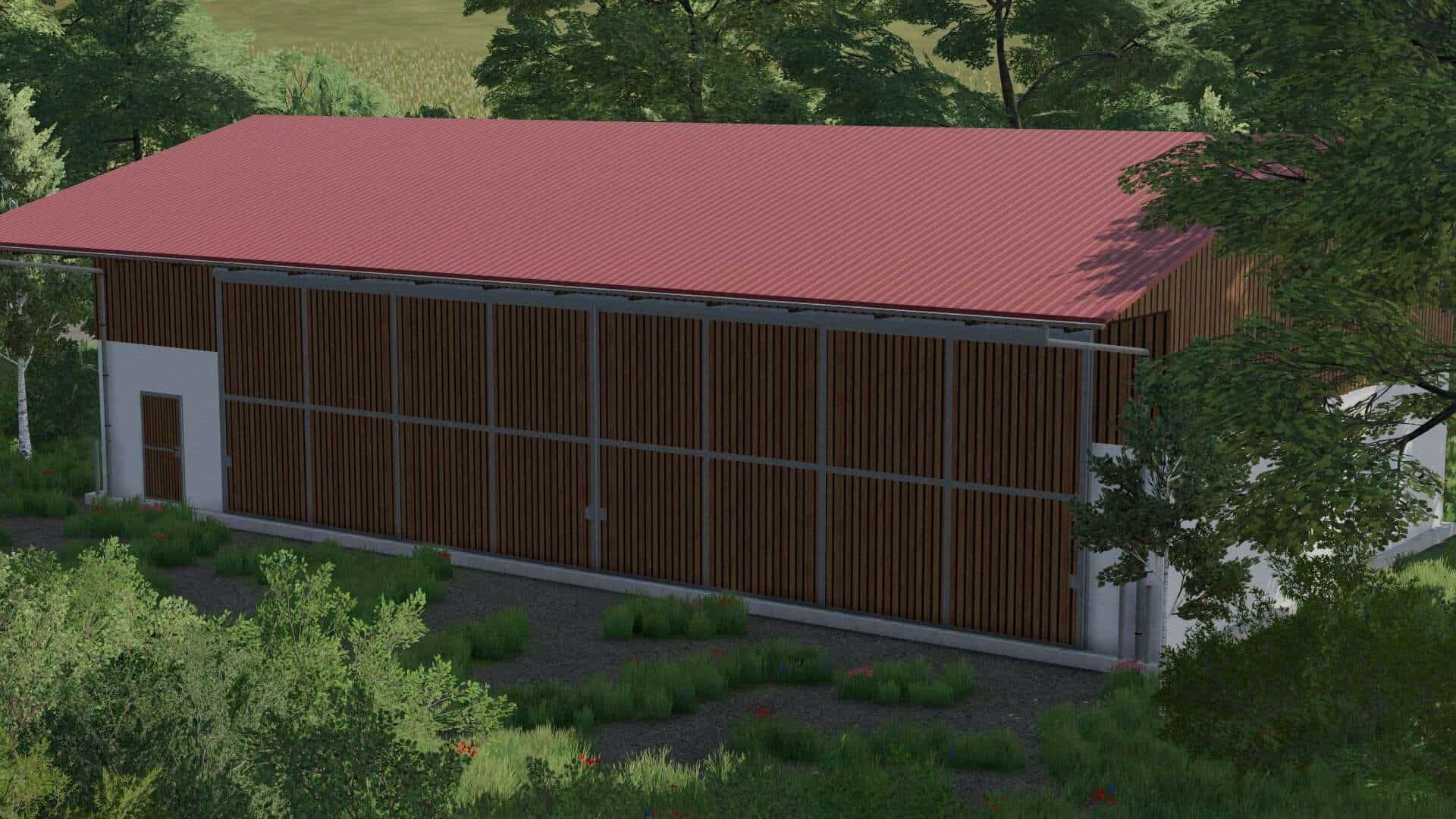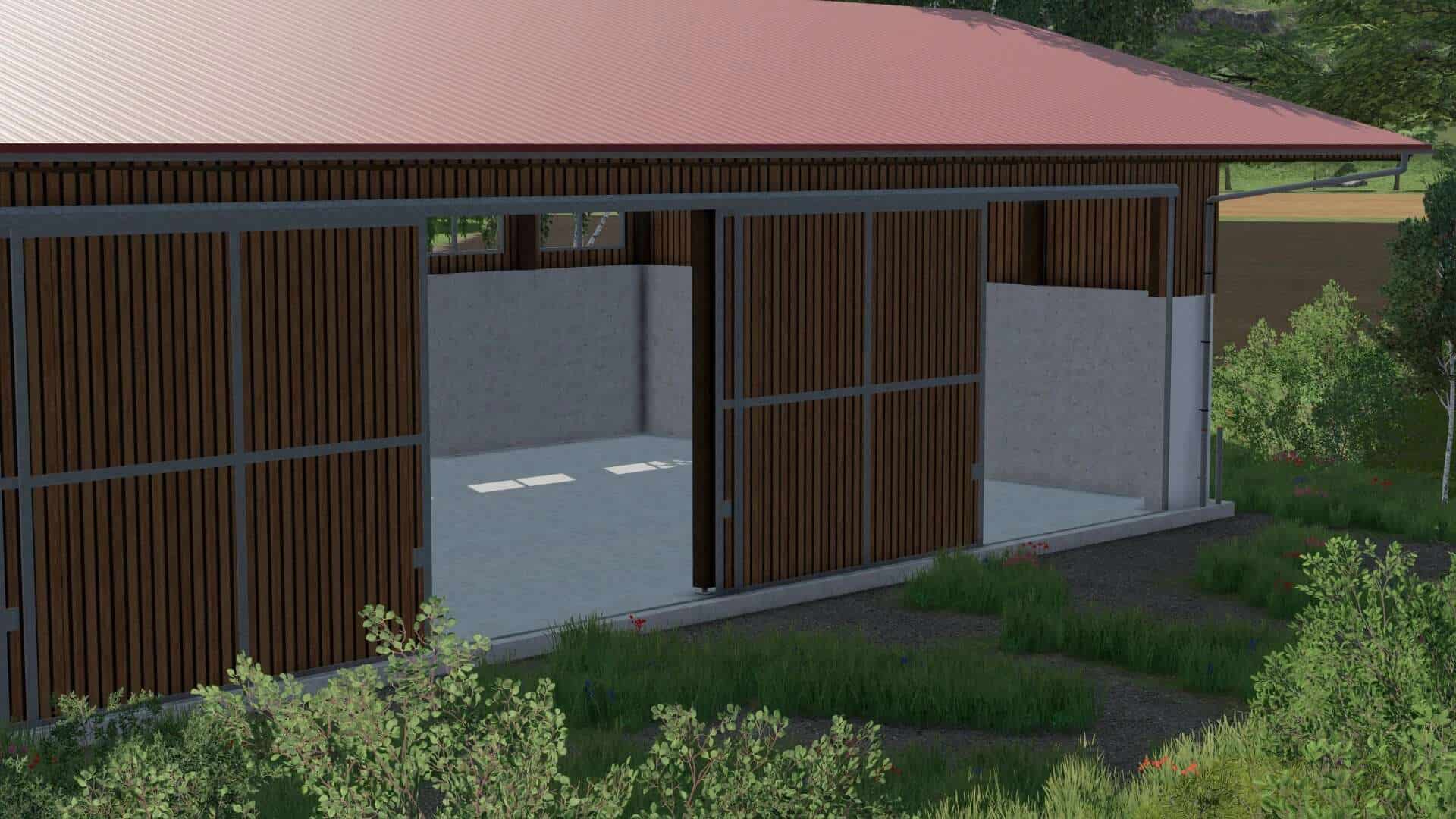 A small hall for storing machines or storing bales.