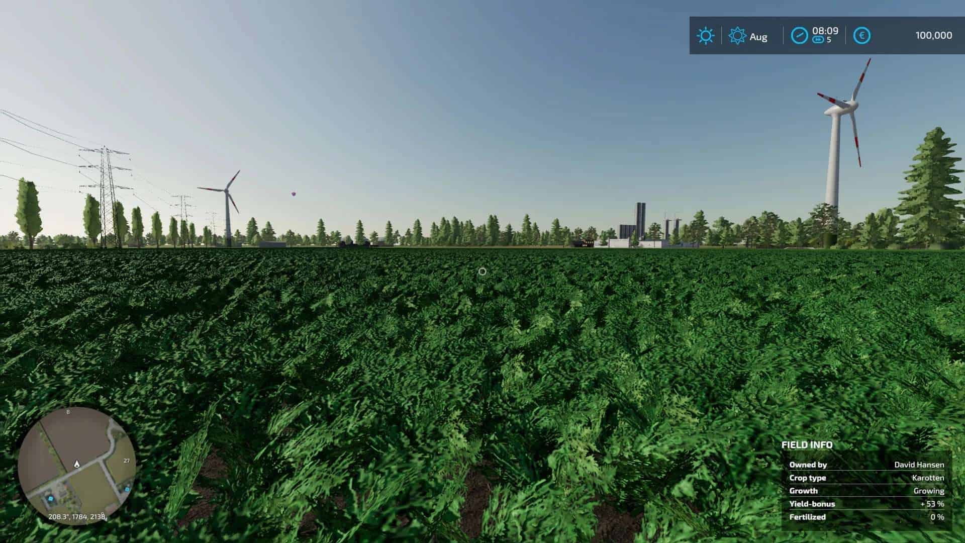 The wind turbines installed on the map are practically only decoration and can be used after you have bought the land