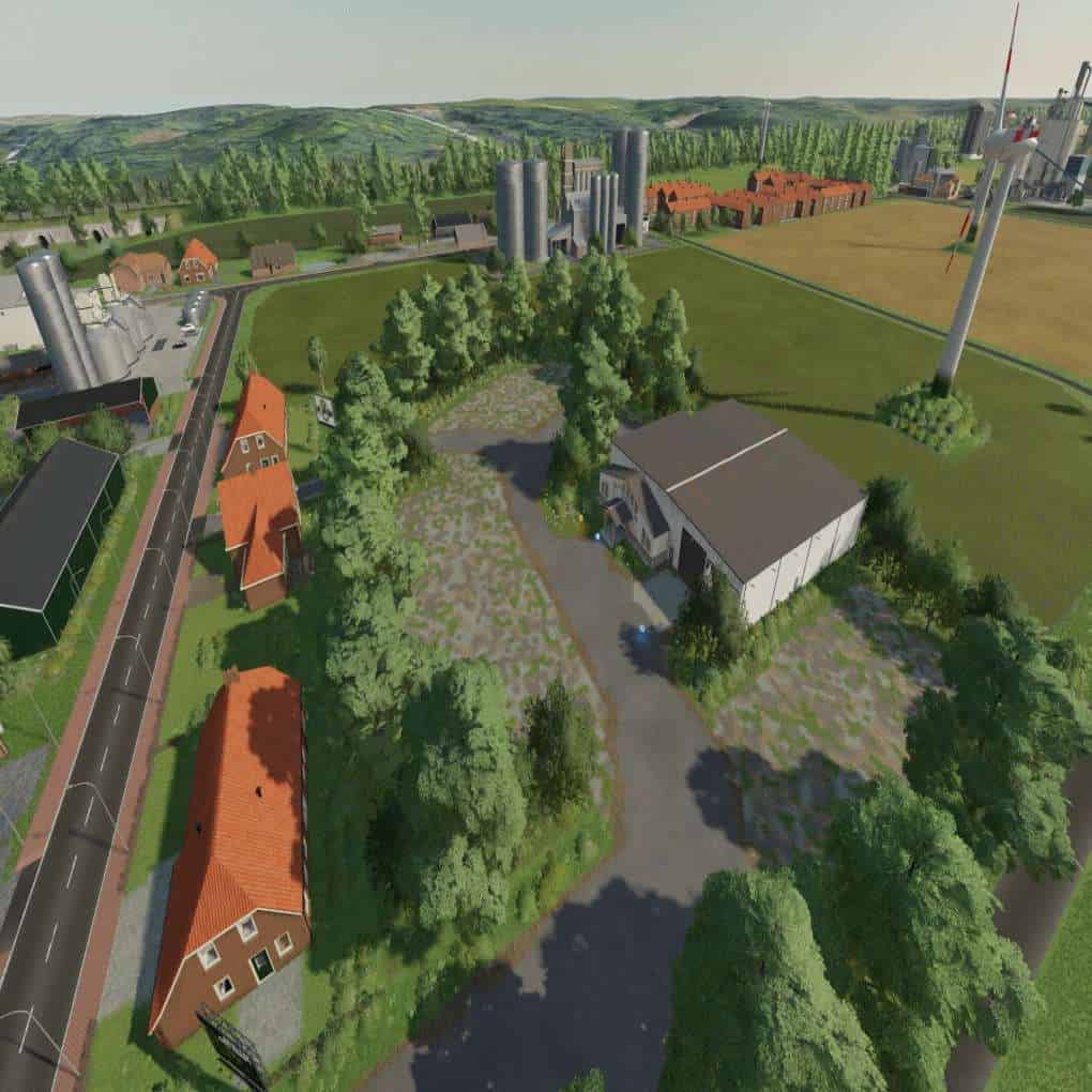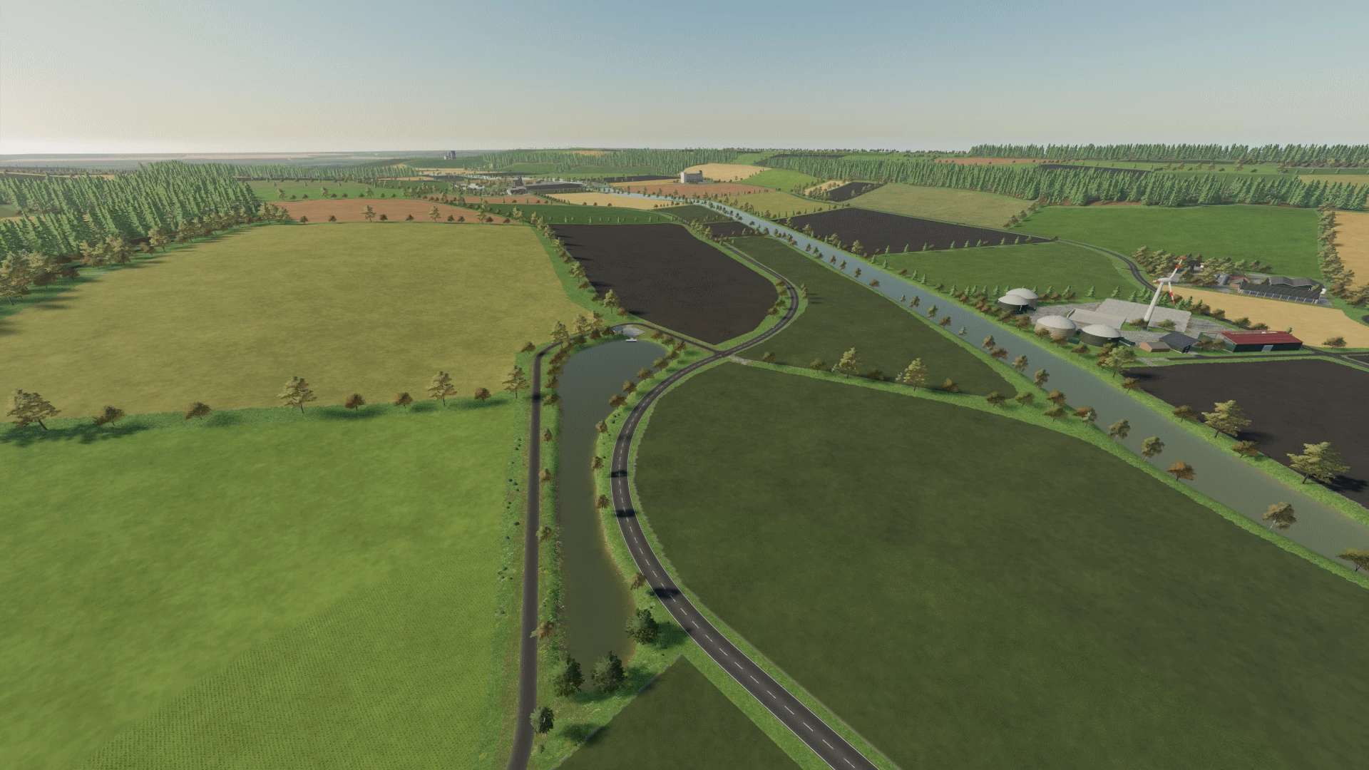The map has 180 fields, 31 forest areas, 8 biogas plants and over 18 built farms that are connected to the