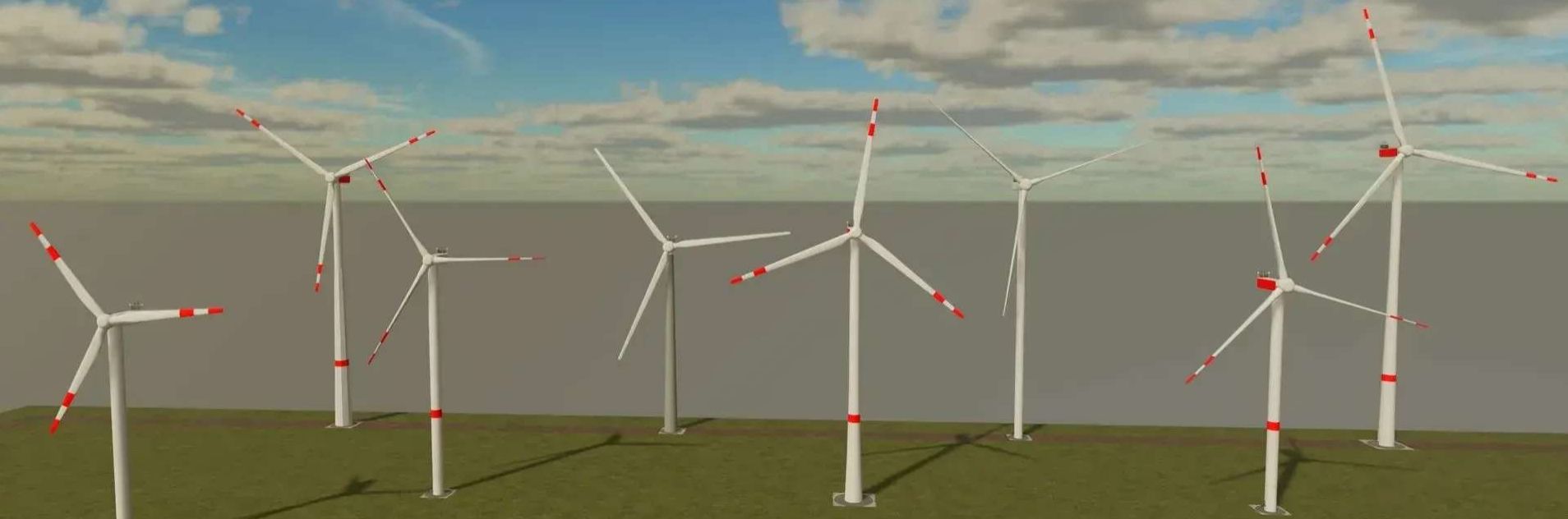 This mod consists of 8 wind turbines from the Nordex DELTA or DELTA 4000 platform with different hub heights.