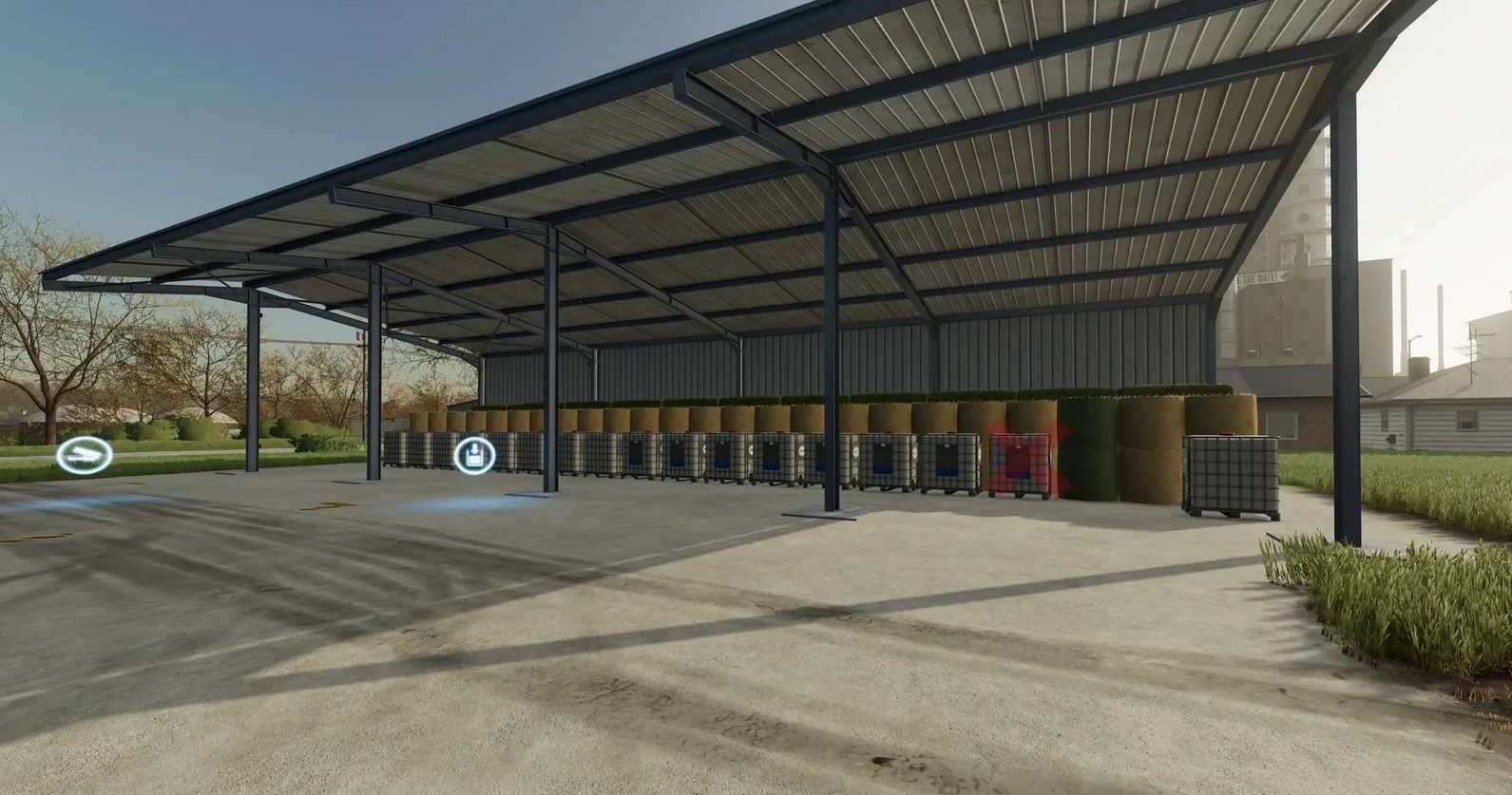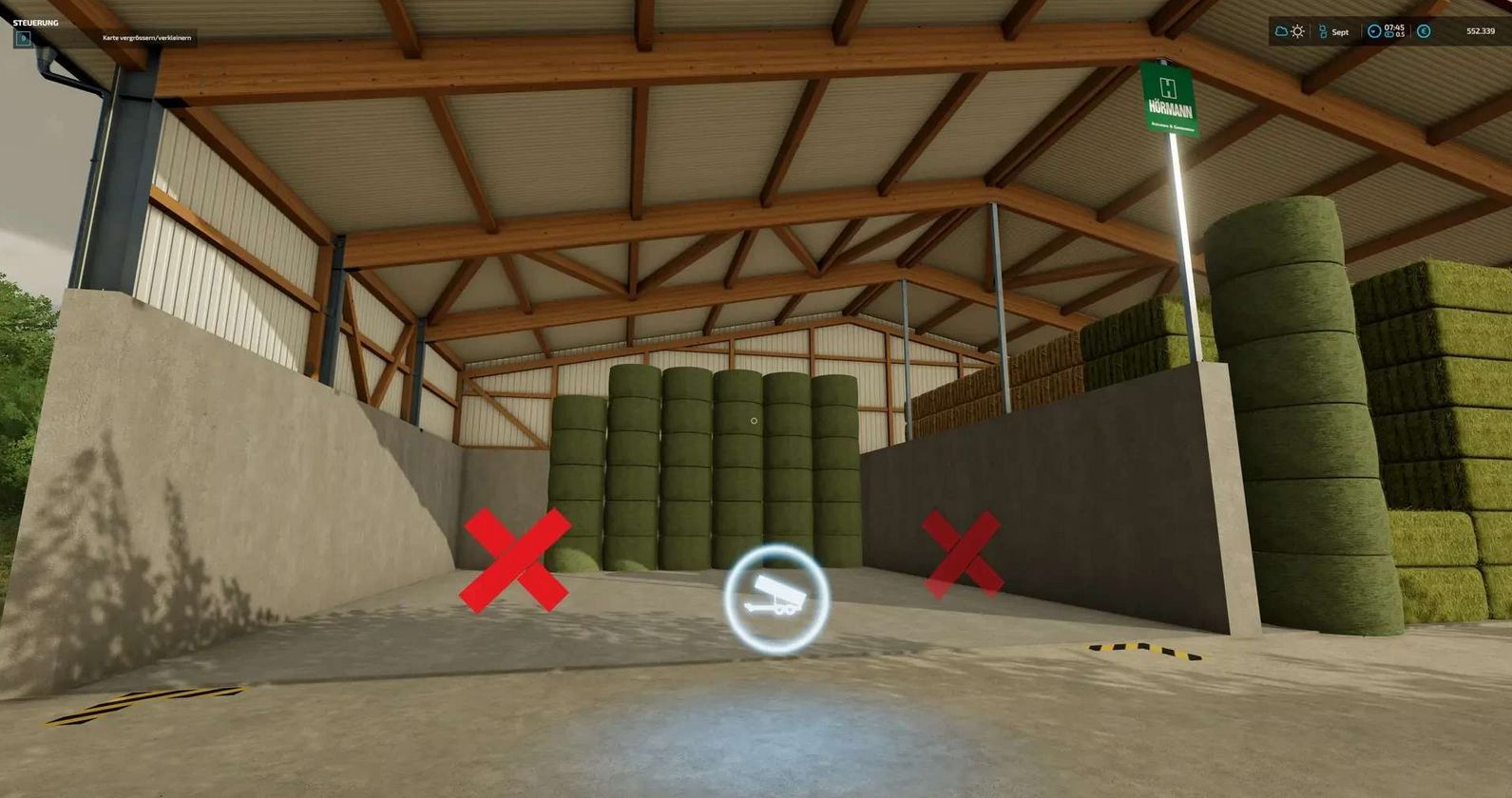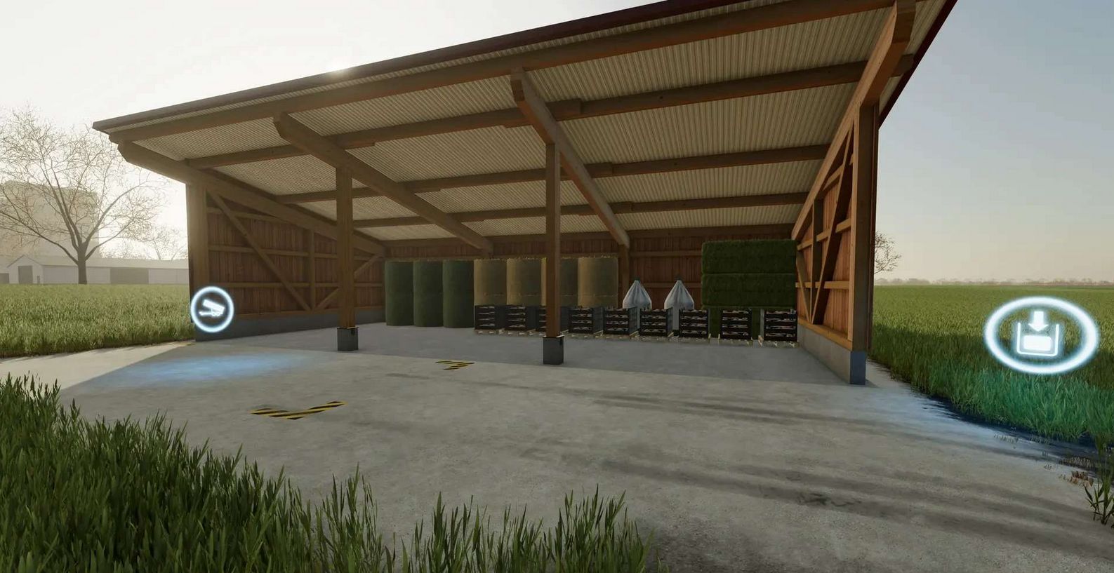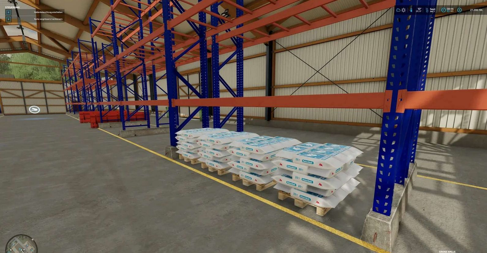 Since there is now finally a basic function of a bale and pallet warehouse since patch 1.9.0.0, but there is only one large hall in the standard game.