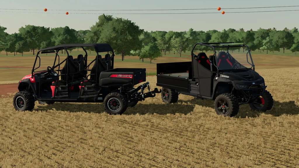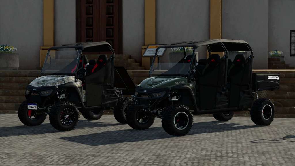 Mahindra Retriever 1000 has come to complement your day on your farm, bringing agility to your farm tasks. In these Mahindra Retriever UTVs you have several options, both in terms of load capacity and aesthetics. The mod pack has 3 versions of the Retriever, the standard version, for two people, the 4 seater version, and the extended bed version to meet greater cargo demands, all compatible with the DLC passenger feature Kubota.