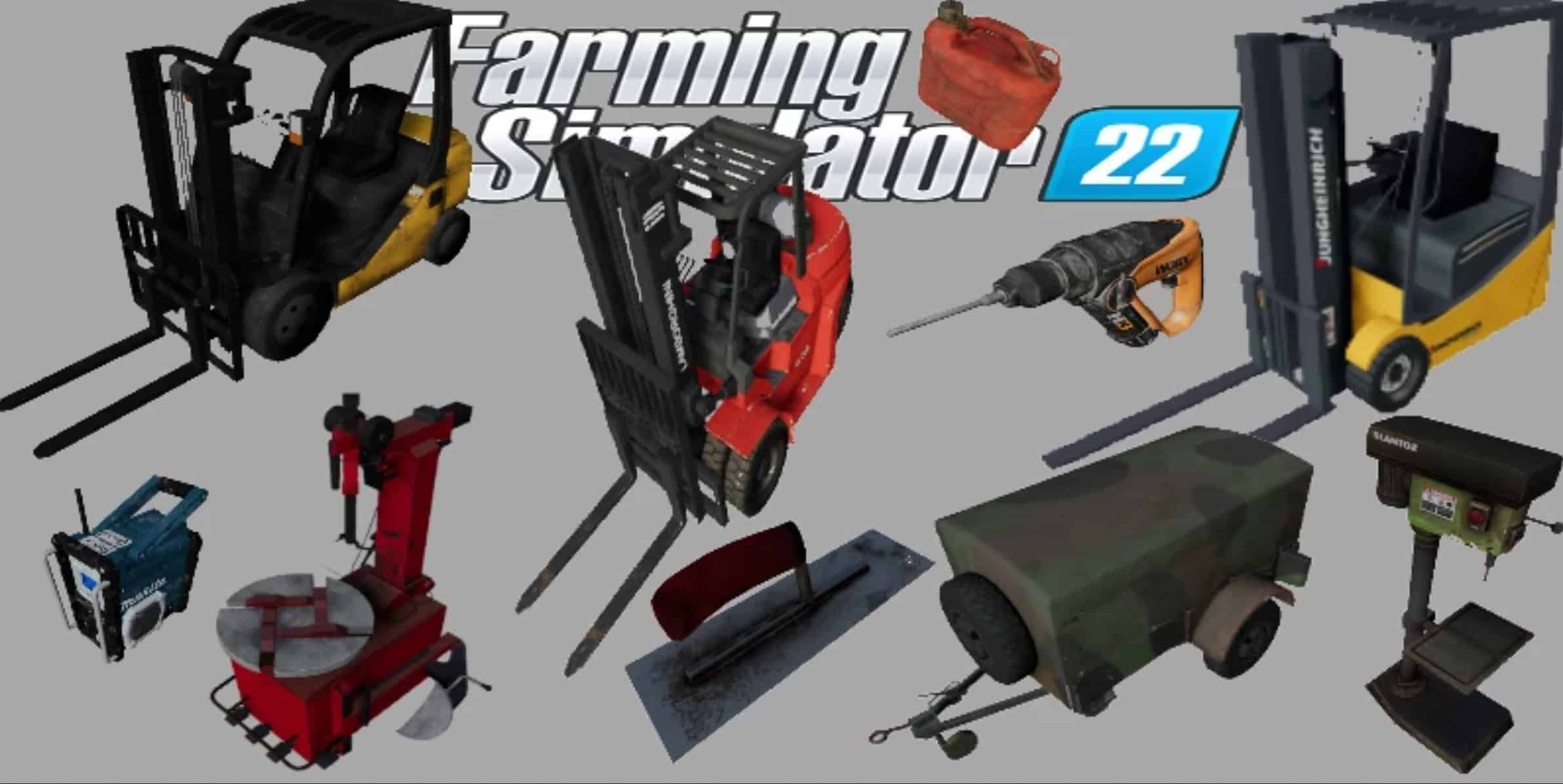 Here is for FS22 an excellent pack of objects of garages.