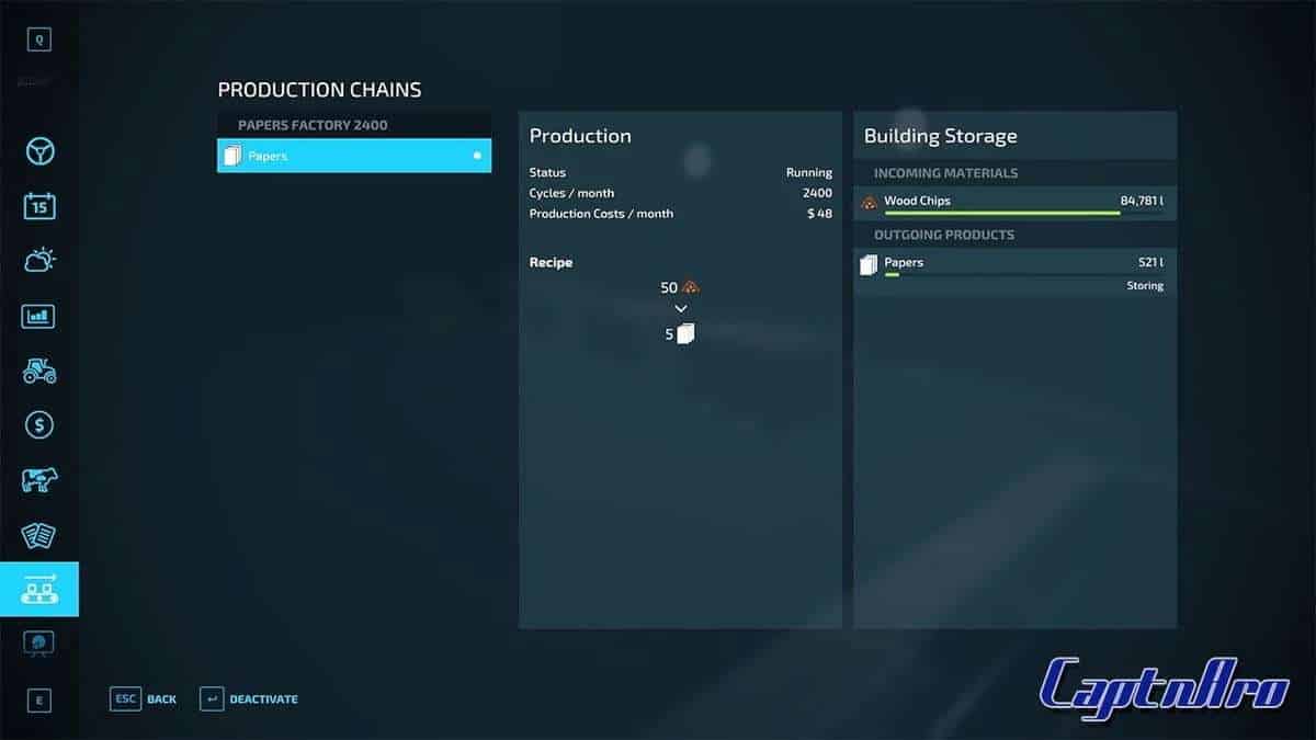 This mod contains 3 factories, purchasable wood chip pallets if you are not into wood chopping and the manufacture of woodchips, and a point of sale for the sale of the papers.