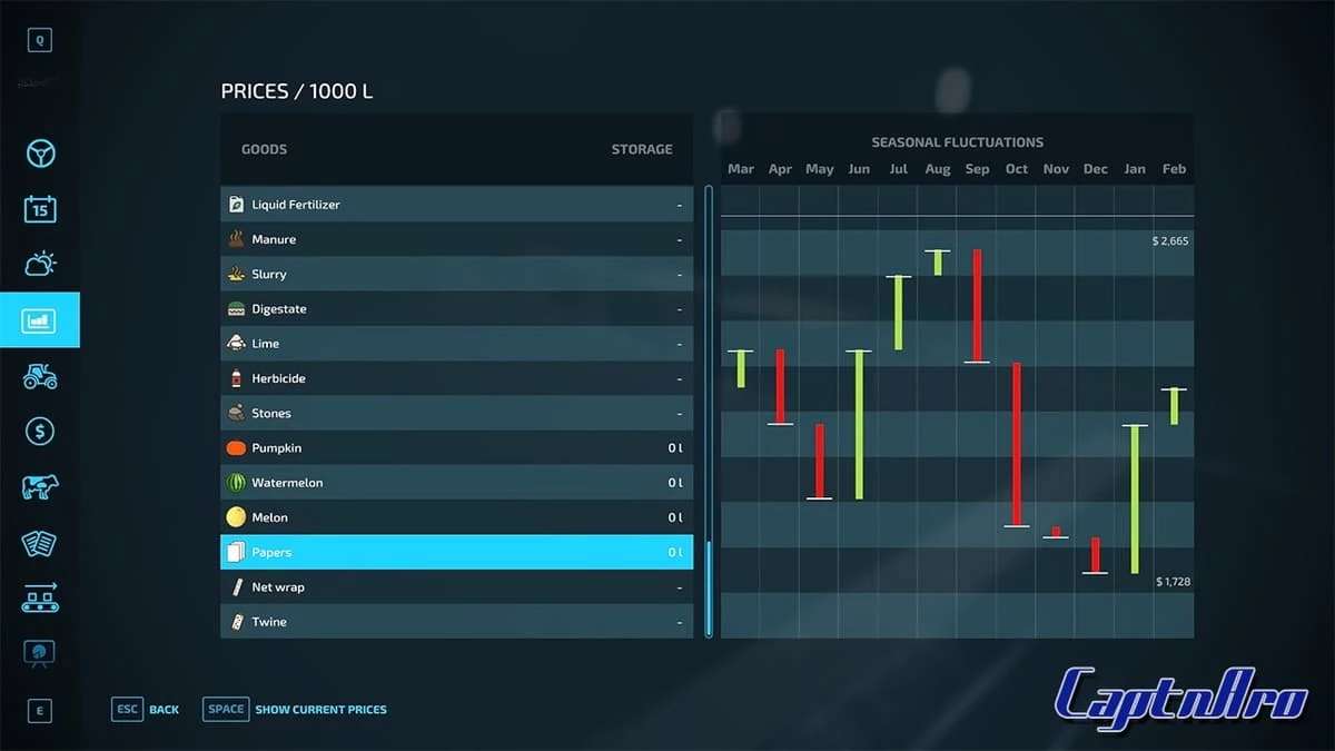 Prices and the seasonal fluctuations are ready.