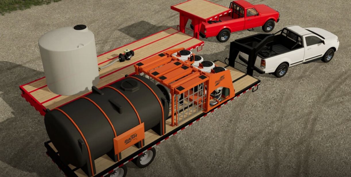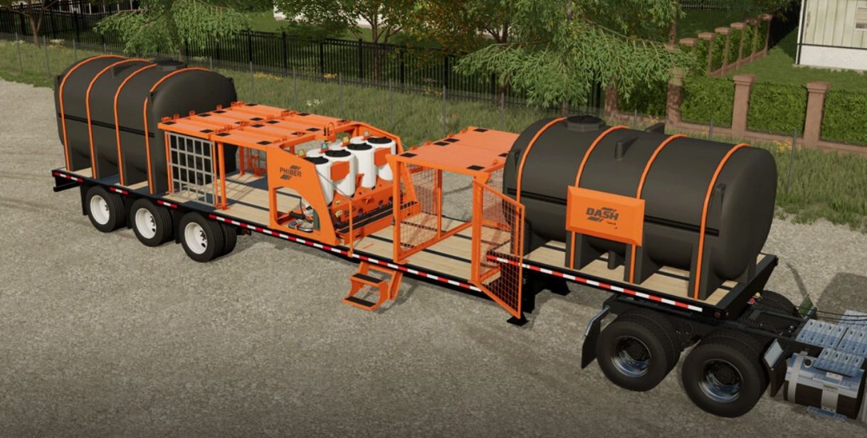 The virtual version of the Dash takes some of the unique features of the real equipment and brings them to the game. The Dash 4.4 and Dash 1.4 are capable of mixing Herbicide from Unmixed Herbicide and water or Liquid Fertilizer from Water Soluble Fertilizer and water. The trailers can either be bought preassembled or you can buy the components you like to assemble your own.
