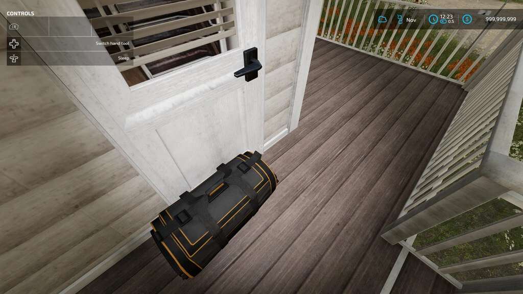 A portable sleeptrigger with spawn point and wardrobe function. You can place this anywhere on your land. Standing infront of the zipper side of the overnight bag you will find a wardrobe trigger standing on the bag you will find the sleep trigger. The bag can be taken anywhere by hand or vehicle to sleep where you choose. No need to worry about losing the bag. Reloading the game will cause the bag to return to its original position.