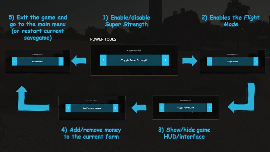 With the Power Tools you have quick and easy access to some “quality of life” features. Especially useful if you are a modder or do mod reviews.