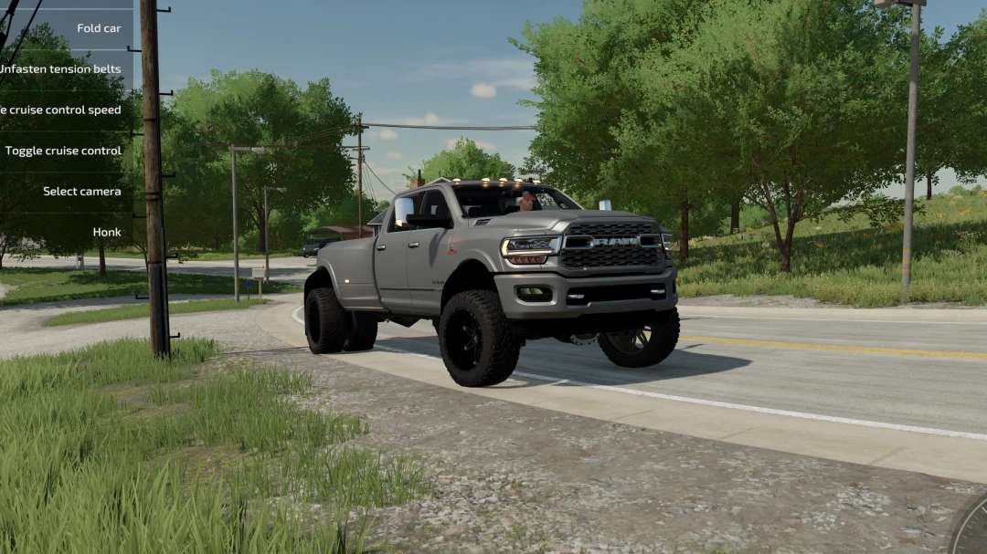 The truck will drift/roll when turning hard above a certain speed. This can be adjusted by changing the center of mass in the “” section of the mod xml. However, that changes the weight distribution and makes the rake of the vehicle different from what I have, which would require more work to correct. I am personally not bothered by the drifting as I drive the speed limit in game mostly, so I won’t be adjusting this, but you can.
