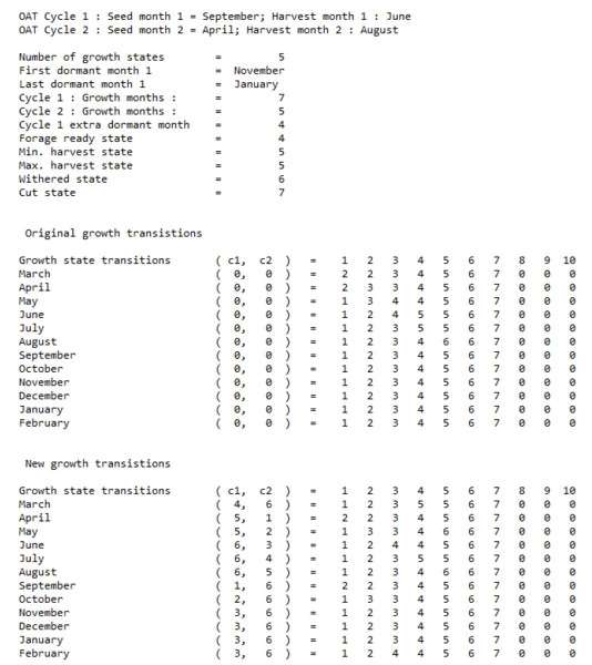 The user specifies the seed month and harvest month for each crop type. The script then adjusts the growth state transitions to make the crop reach its harvest state at the specified harvest month.