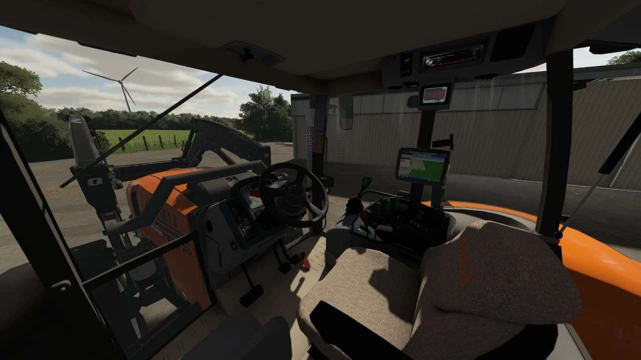 Steering wheel and GPS trimble in cabin,