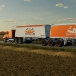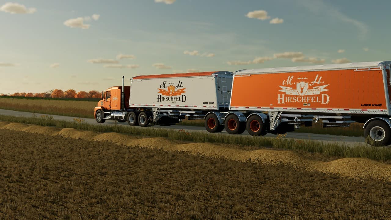 The LS22 Mod by [HIP] Patrick brings the first Hirschfeld Hauling Roadtrain to the Farming Simulator 22. This trailer set is completely available in the shop and can even be extended. The divided granaries give enough opportunities to set off with different content.