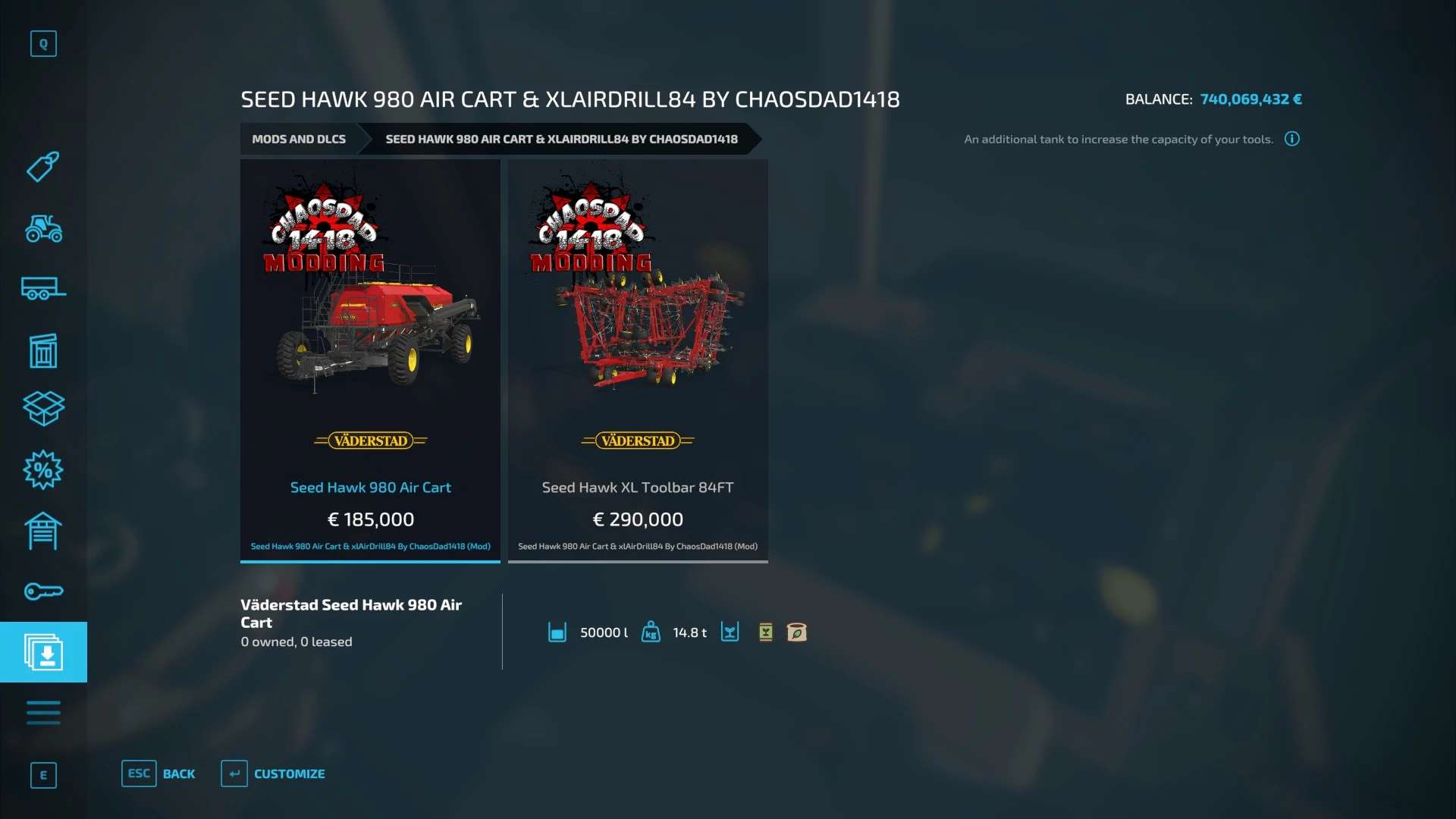 Seed Hawk 980 Air Cart & xlAirDrill84 v1.0