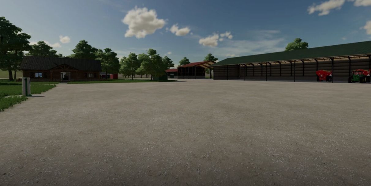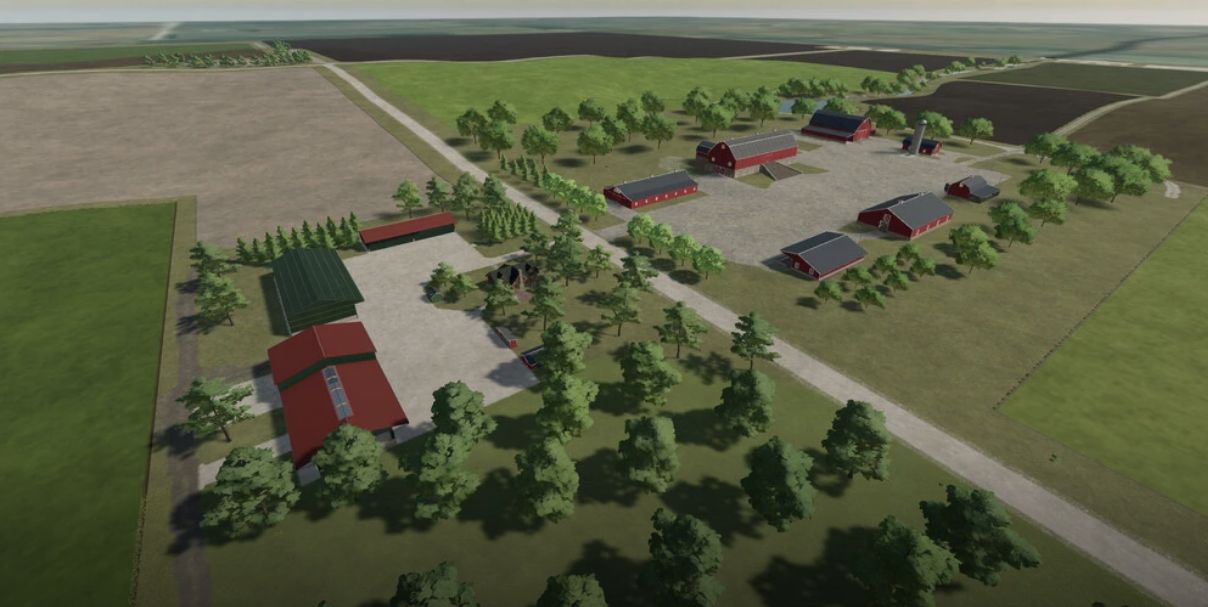 Keeping the map simple with one one farm, fewer fields, and mostly just the base game sale points. You will be able to buy all of the land including roads so you can landscape fully. Snow will also fall on the gravel roads so you have more to do in the winter if you like. All production points should also be sellable to be able to customize the map for yourself.