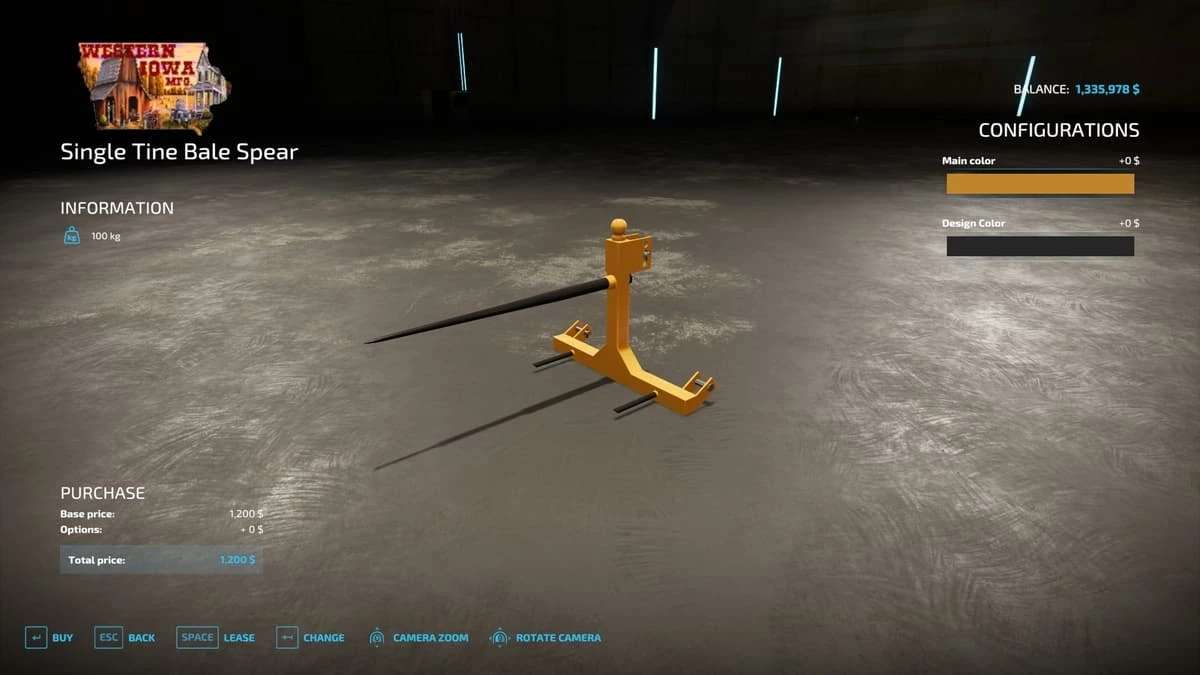 Single tine bale spear v1.0