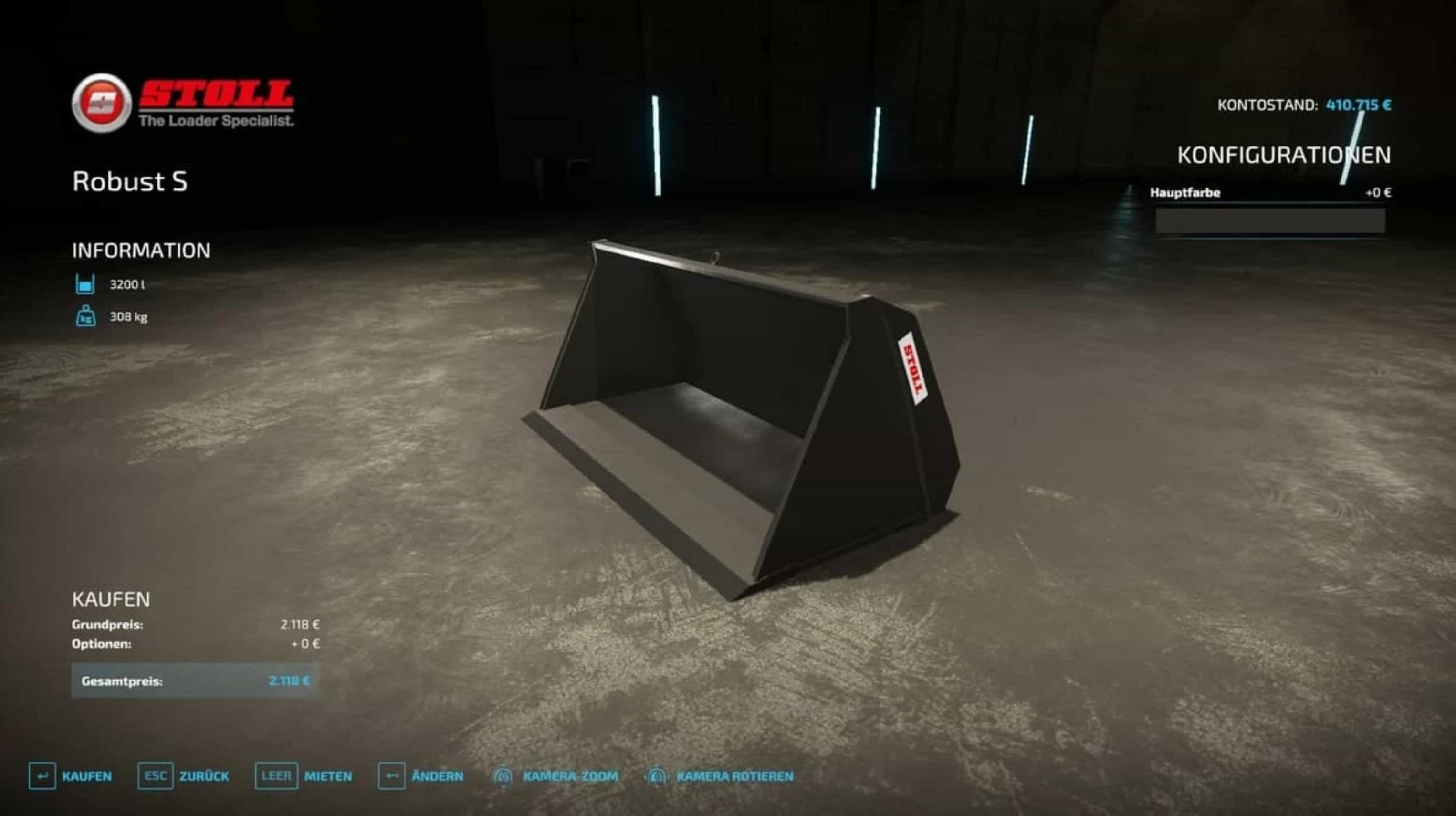 This 3200 liter bucket can be found under front loader tools and costs 2118 €