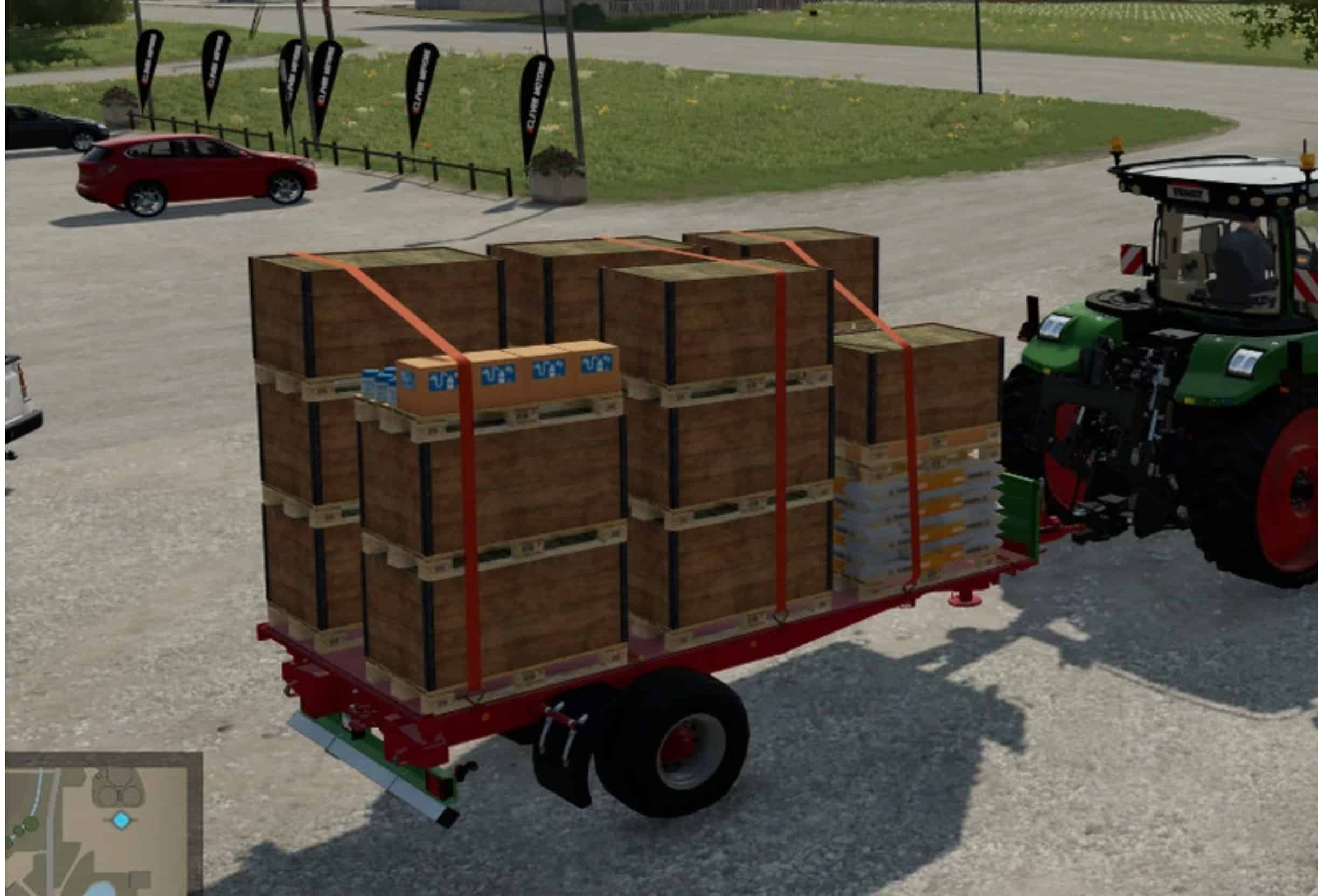 The autoloader loads all standard euro pallets from the main game and loads 8 pallets in the first layer.