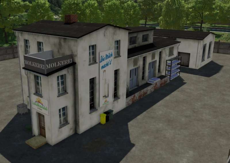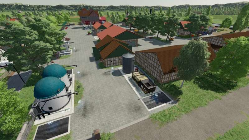 Once again, there is a solidly built large yard with the main house, many barns, and diverse equipment. The silos are separated from each other. There is the large grain silo for everything made of grains, the earth crop silo, and the silo for cow and pig feed, silage, and chaff. There is also a straw, hay, and grass store. All silos and warehouses can be stored, and via pipe systems wirder removed.