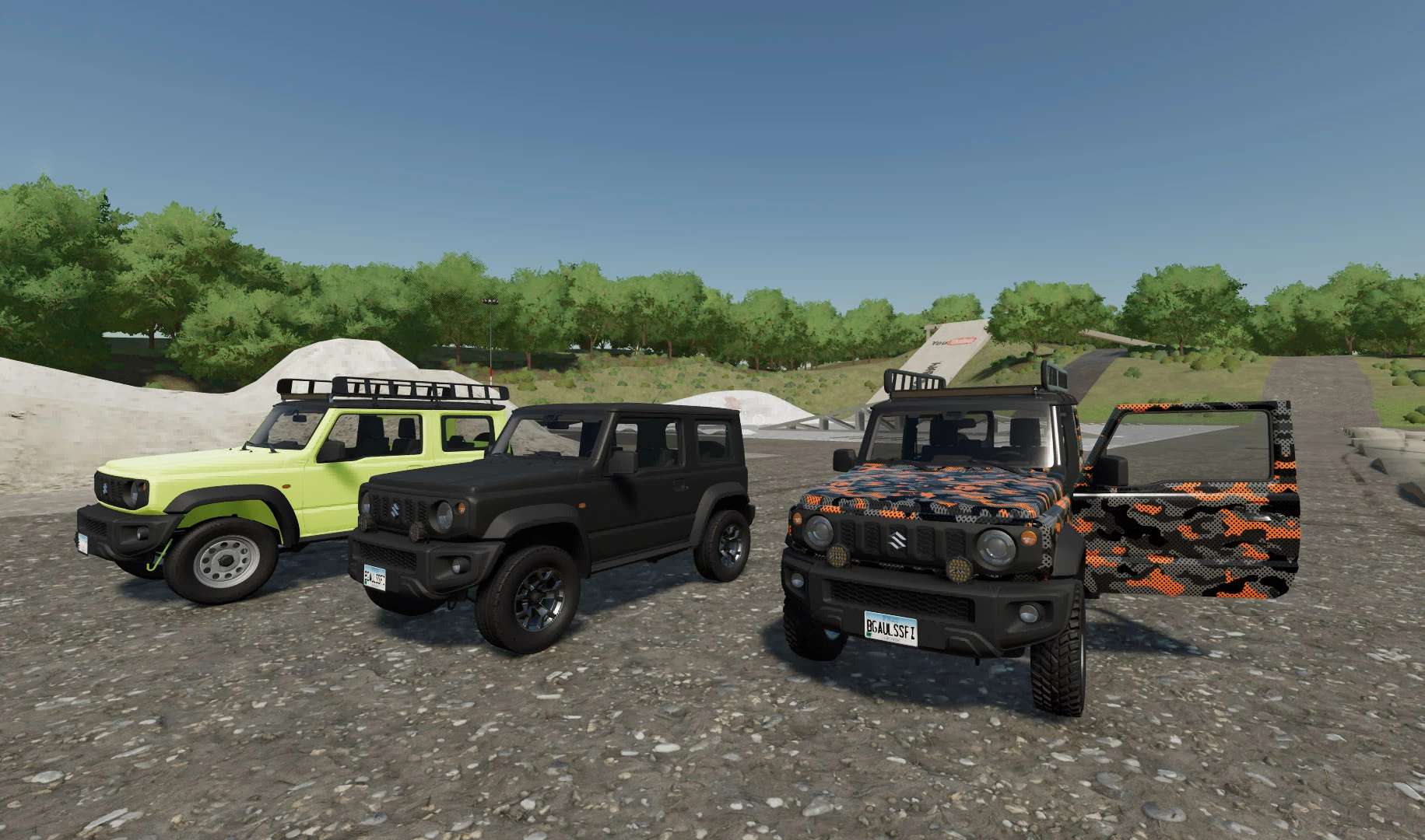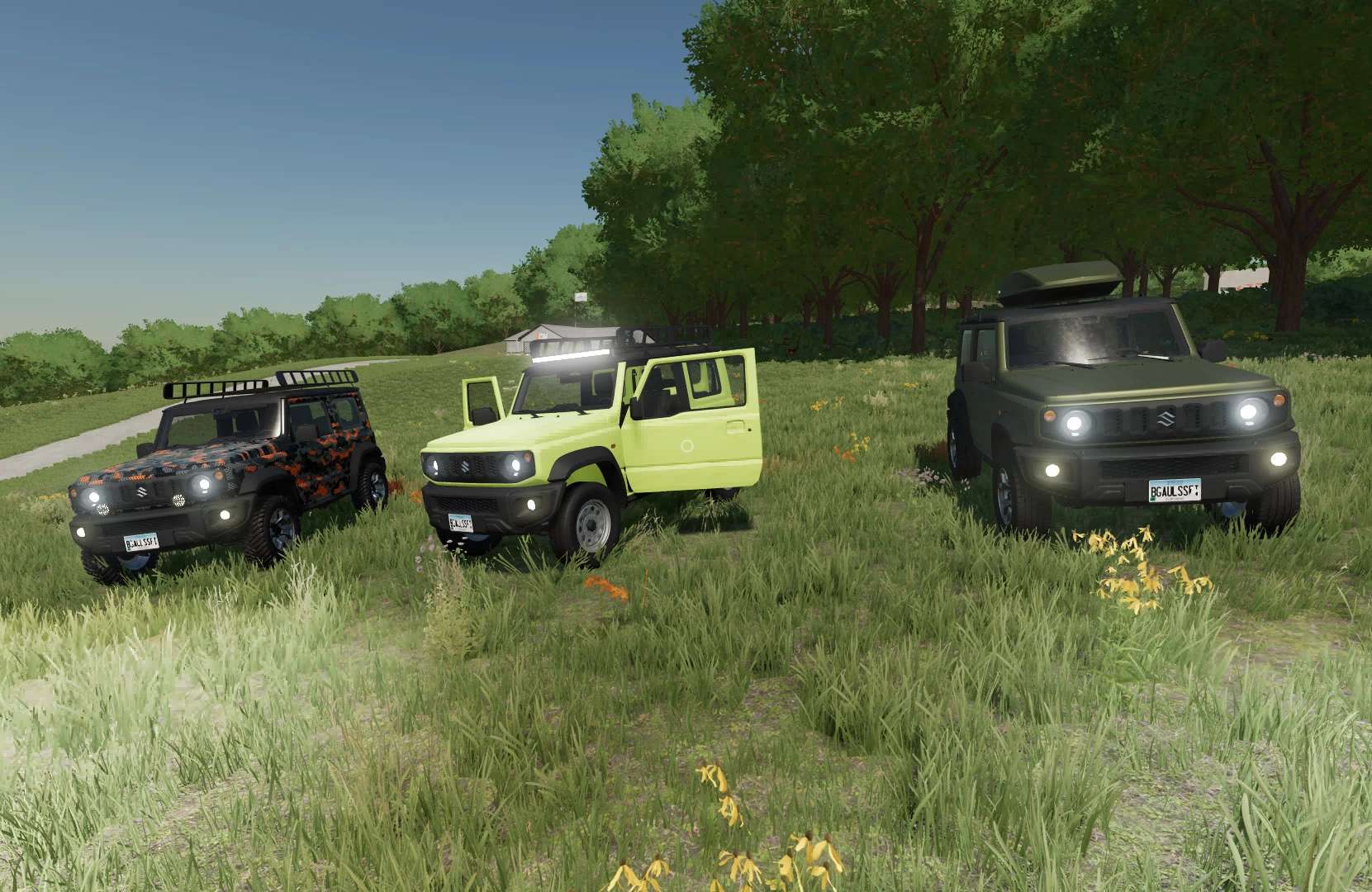 The Suzuki Jimny 2019 mod is based on an envelope from SoSi-Modding and a mod for FS19 from TB.Simulationen, RedCat 3D, Swedish Bonna Team, as well as some elements from other publicly available mods.