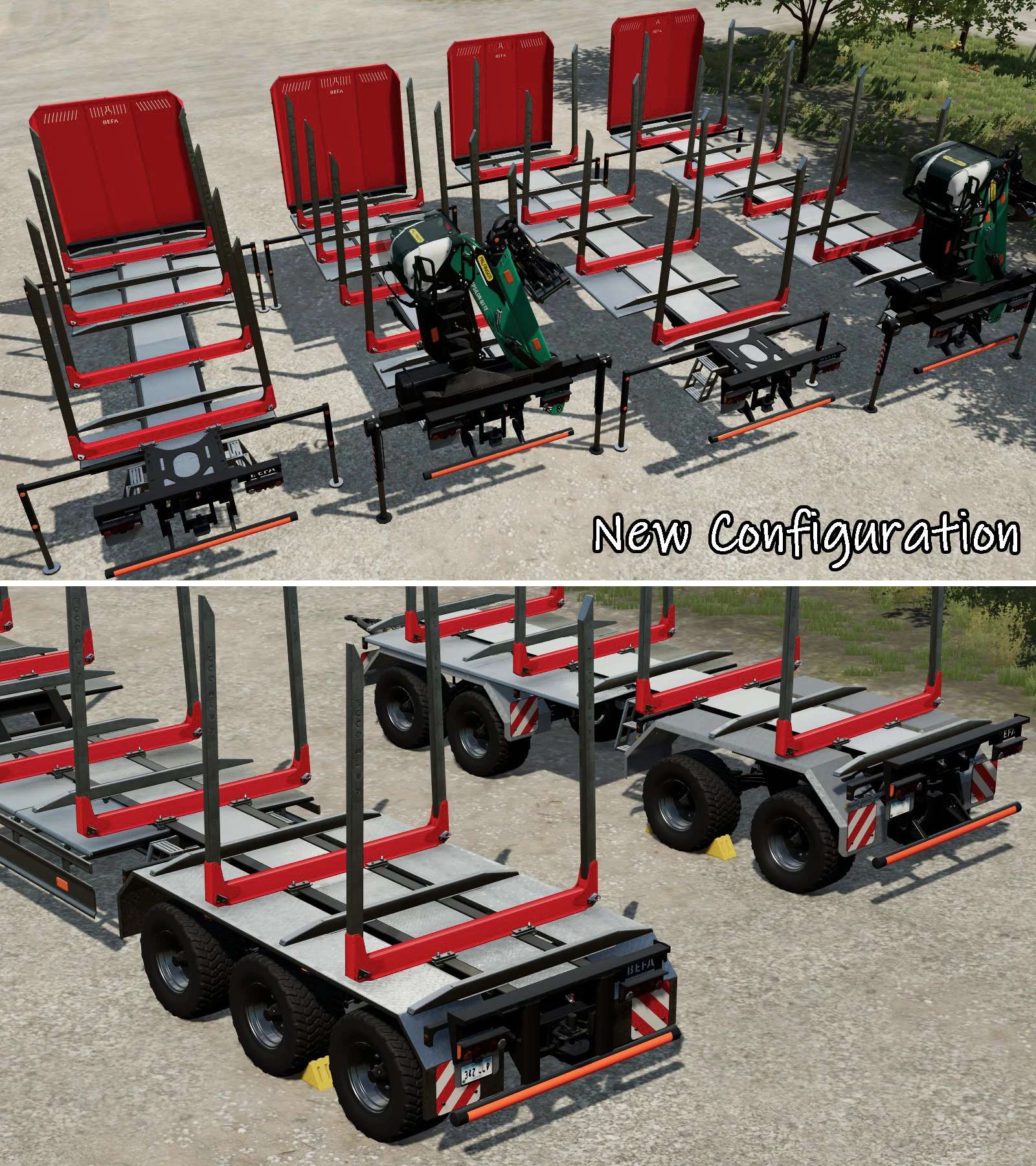 Please refer to the preview image for the characteristics and purpose of the vehicles and trailers in this pack. The rest of the details are left to you to explore.