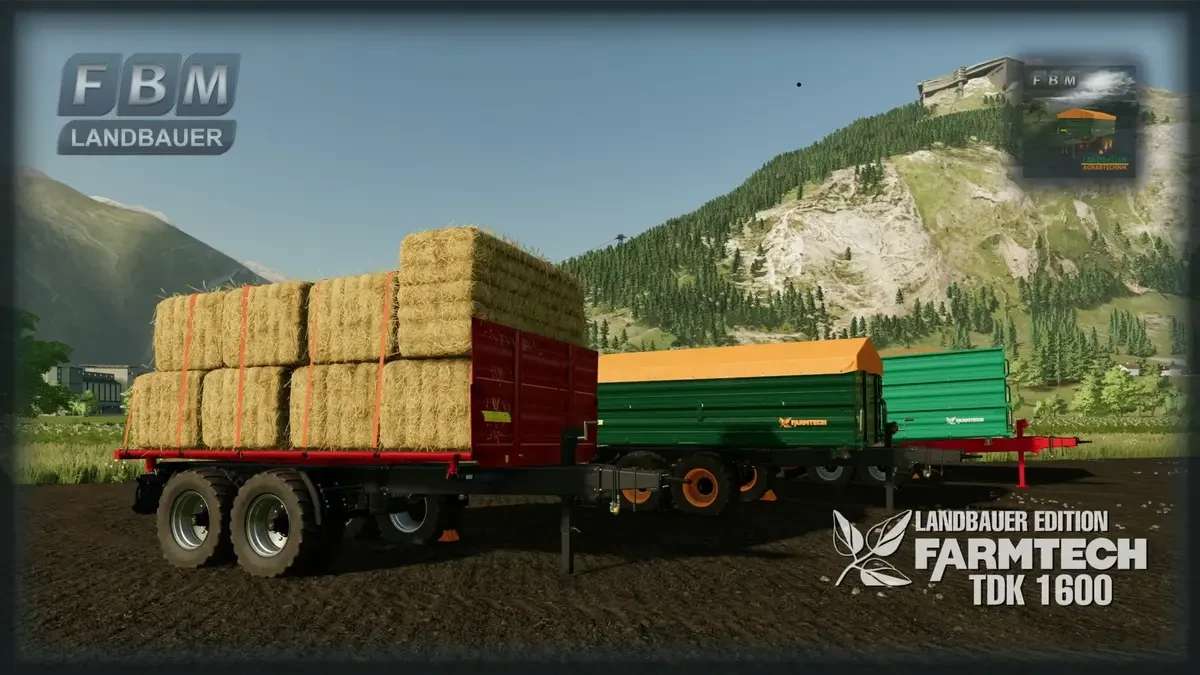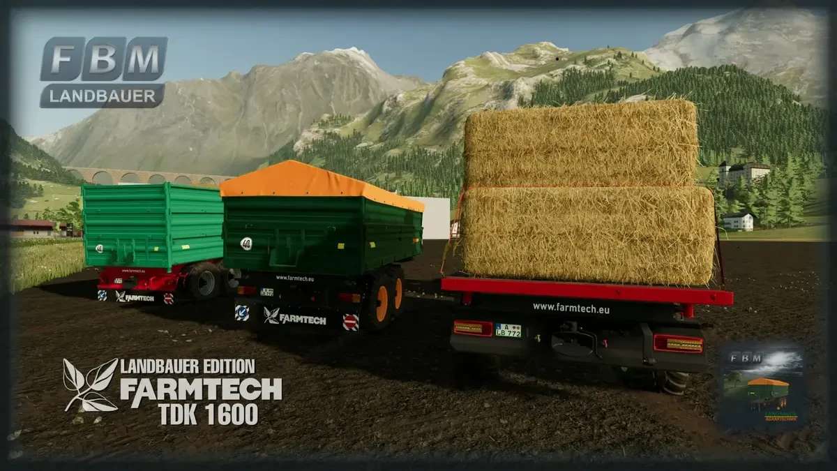 The “TDK 1600” Landbauer Edition from the manufacturer Farmtech. The tandem three-way tipper is the best possible transport solution for both beginners and professional farmers thanks to the wide range of equipment options. You can choose from the standard version with a loading volume of 14,000 liters and a tarpaulin design. The extension version with a loading volume of 21,000 liters and the loading platform version for transporting bales and pallets.
