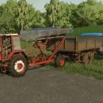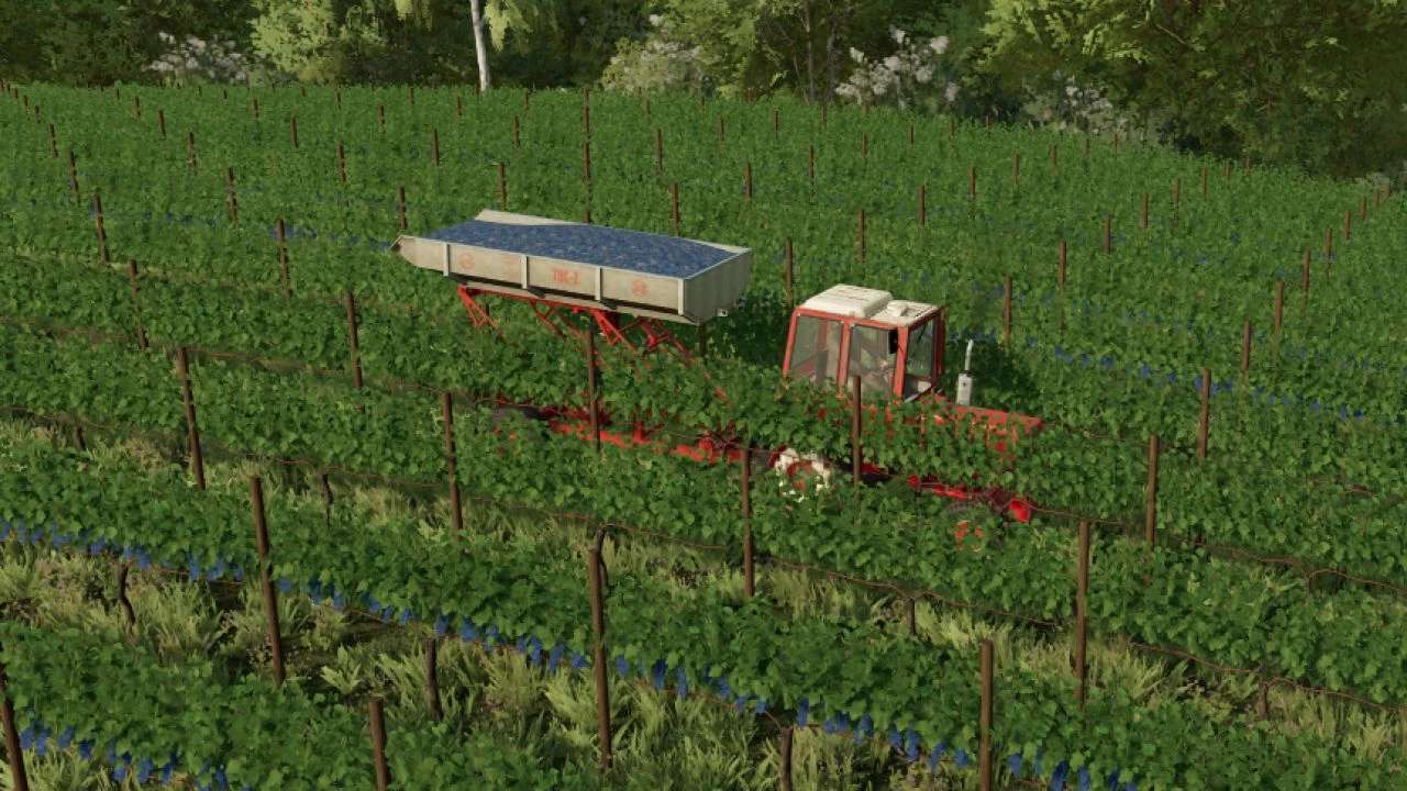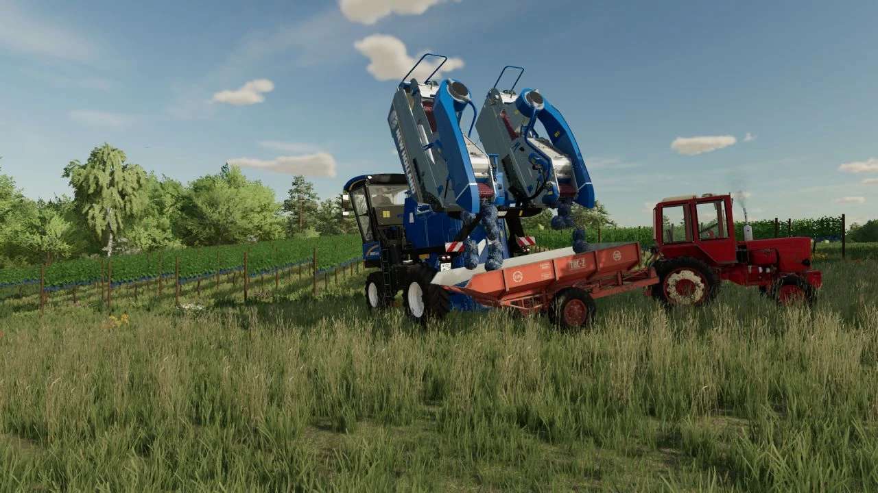 It is designed to work with grape harvesters – the removal of grapes from row spacing, unloading it into a vehicle or transporting it to a place of processing.