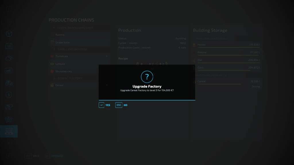 – Production chains now have levels that you can increase.