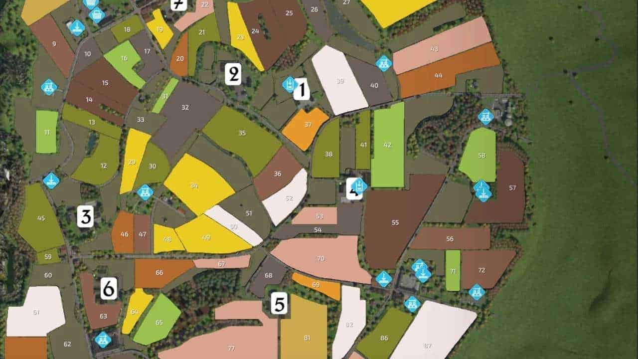 All productions placed on the mapThe map is a conversion of the original LS19 map. We have covered the following: – all newly built outlets except for land trading