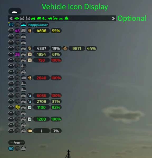 new *VEHICLE ICON DISPLAY* (optional On/Off in Gui Menue)