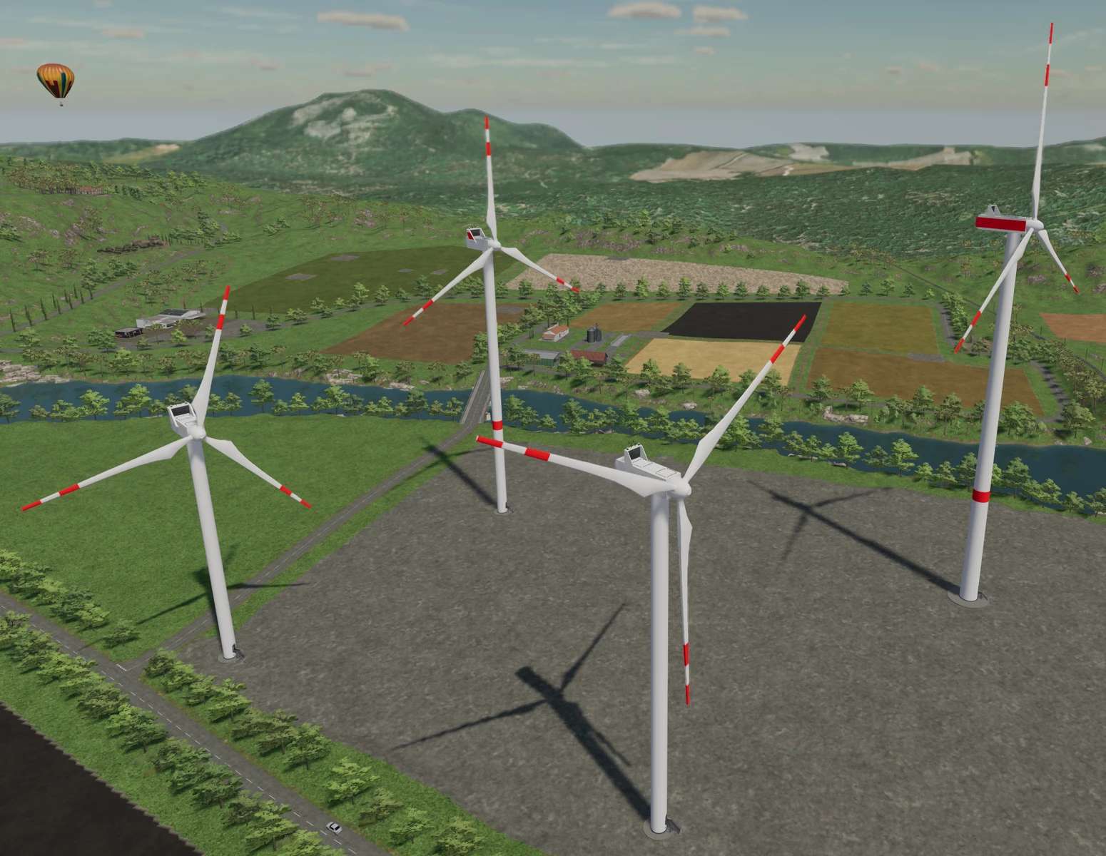 This mod consists of 4 Vestas 2MW Platform wind turbines with different hub heights.