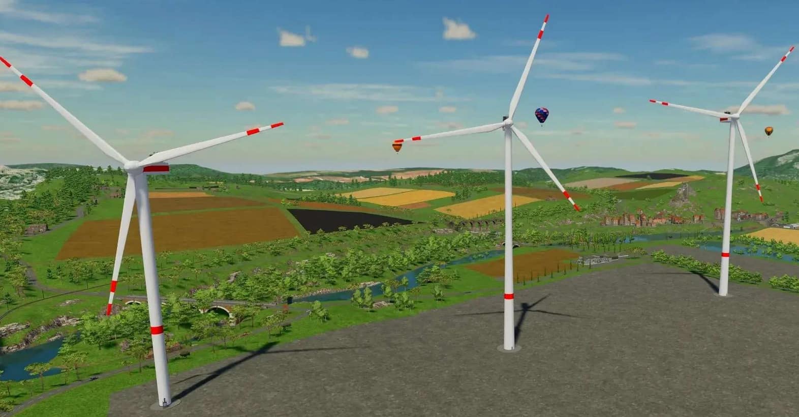 This mod consists of 3 wind turbines of the EnVentus platform with different hub heights. The following are the features of the plants: