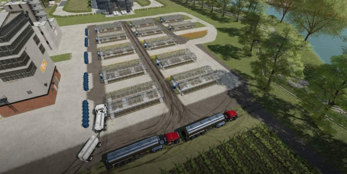 Ample space for you to build your farm, with green areas leveled and divided into modules