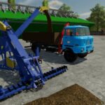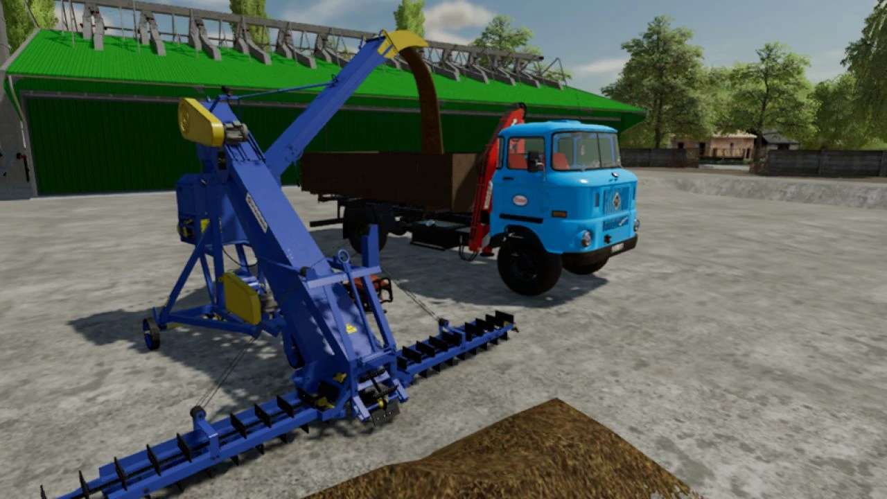If you do, you have two options. One is that you blow the material or drop it into a trailer. To turn it on, use the left control plus the B button, so you can synchronize both machines via an aggregator. You can pretend that you are going under with a truck or trailer, or anything that can be loaded. Or it is also used for blowing in flat storage.
